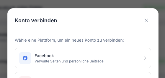 Um deine Facebook Seite mit Toolidol zu verbinden, gehe in Toolidol auf Konten > Konto verbinden